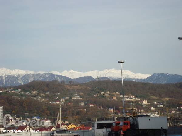 Вокруг еще идет стройка. Но вот и у нас появился в горах снег))