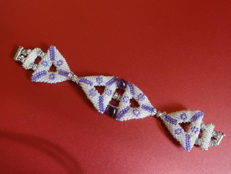 Сплетен из бисера, с добавлением натуральных аметистов, застежка магнитная, рондели с кристаллами сваровски.
