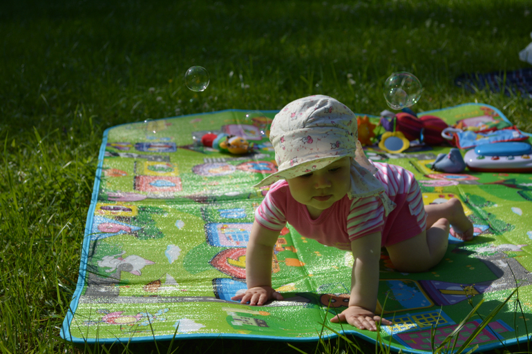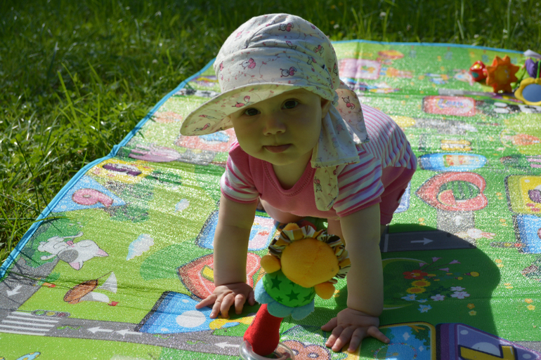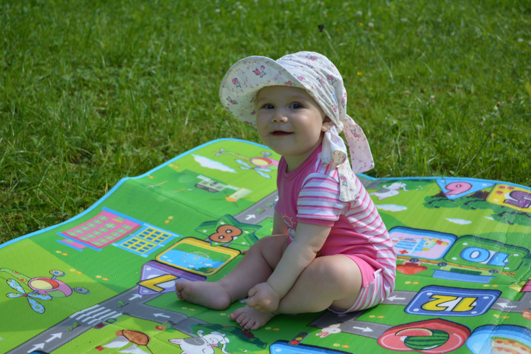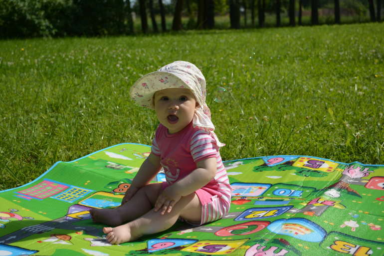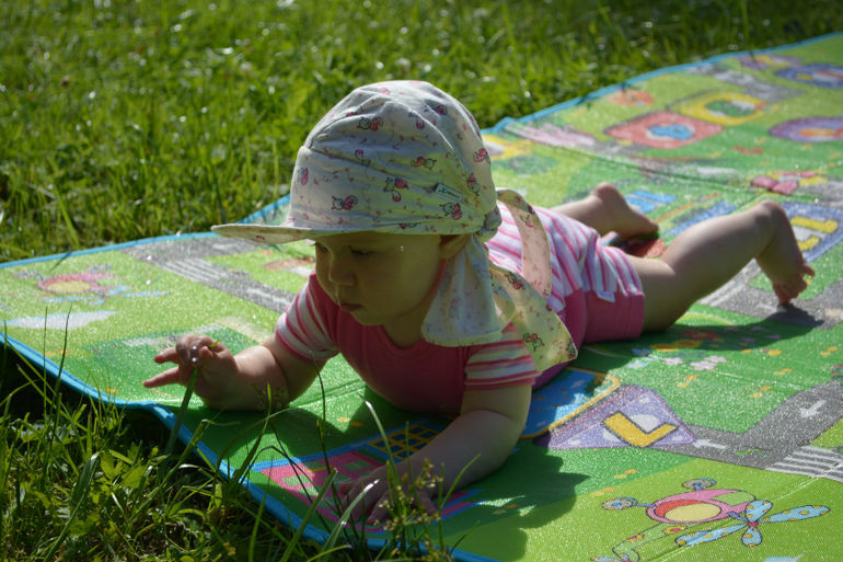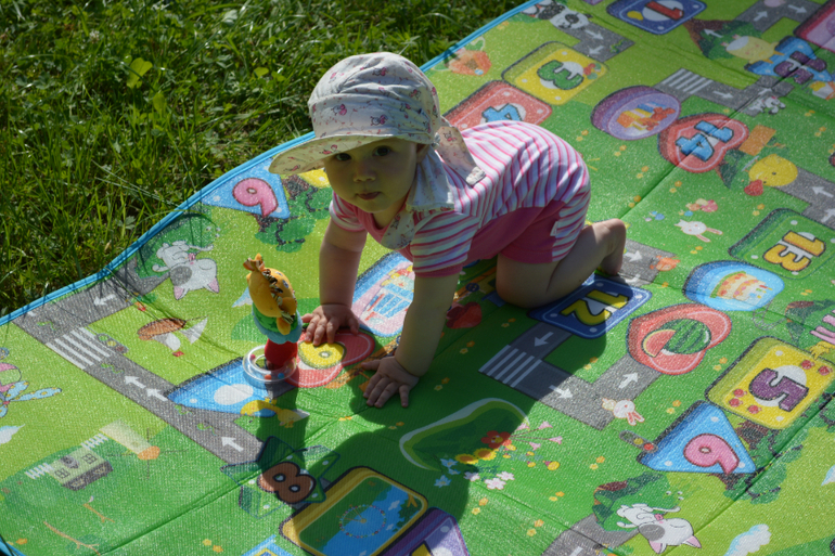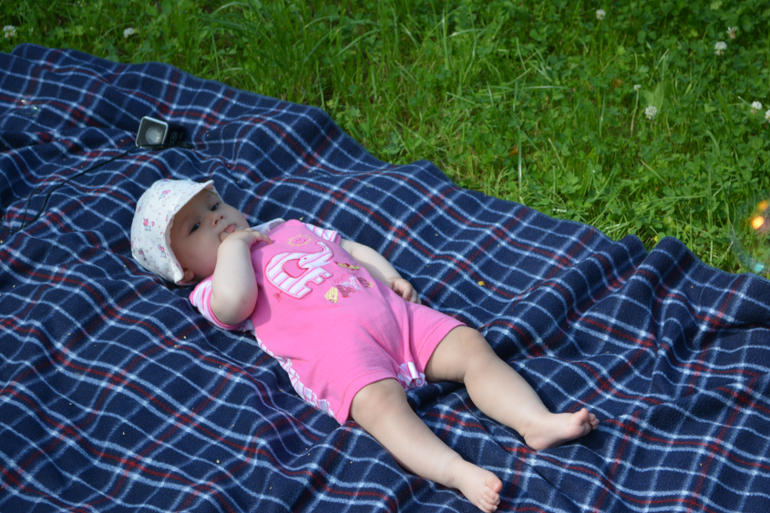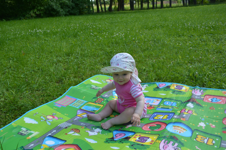 В воскресенье мы с мужем и дочей решили отправиться на пикник))) Взяли плед и коврик для малой, воду, фрукты, игрушки и залегли на полянке))) Крис поспала часик, потом тусила на коврике и норовила схомячить всю траву по краю)))