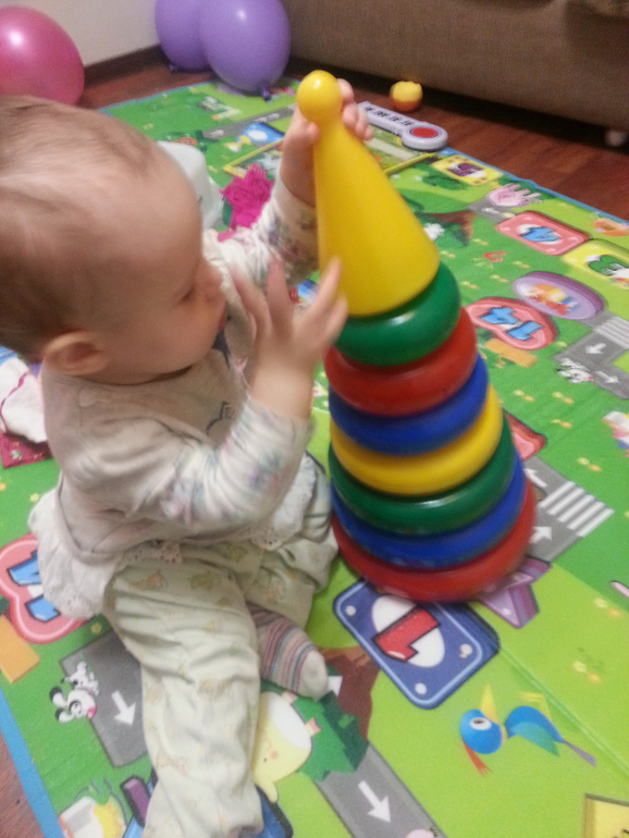 поэтому оставалось только горячее!) Гости были назначены на 14.00! Кстати о гостях) Так как живем мы временно у моих родителей, то и приглашать могли лишь ограниченное количество, да и растягивать на несколько дней не было ни сил, ни времени, ни денег! Решили пригласить родню и крестных) Вышло 10 взрослых, трое немаленьких детей (7-12 лет) и наша именинница!!! Как обычно суматоха, спешка, не успеваем и т.п. Еще надо было сбегать за напитками и шариками