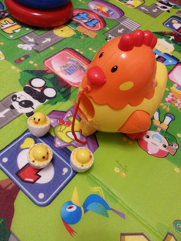 Курочка с цыплятами) Забавная каталка! Курочка кудахчет. Цыплята-неваляшки, их нужно спереди в дырочку класть, тогда при езде они сзади по очереди "вылупляются" и пищат))))
