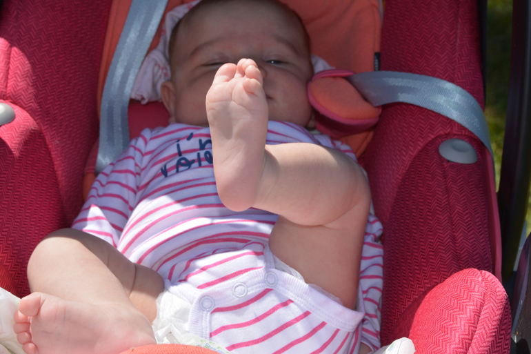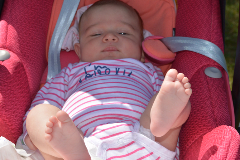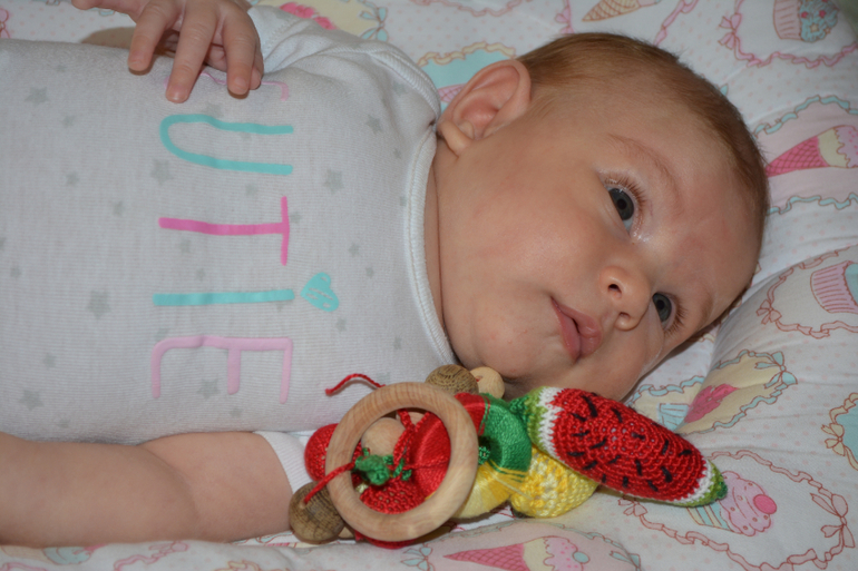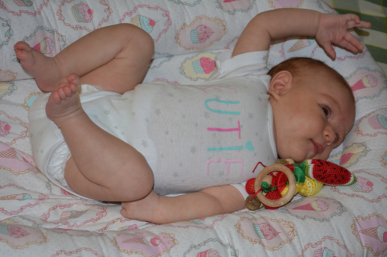 Ахр, агр, аррру, агру, брр, арр и прочие милашности вылетают из ее сладкого ротика!!! Может минут 10-15 лежать и болтать) Обожает смотреть в потолок! Уж не знаю, что ее там привлекает, но аж голову закидывает и смотрит замерев. Вообще ТТТ чрезвычайно спокойный ребенок! Безумно боюсь сглазить, но мне кажется(чую прям), что Софа такой и по жизни будет. Тихой, правильной, рассудительной. (Вот интересно будет проверить это в будущем)))) По мне так практически идеальный ребенок - плачет крайне редко и только по делу - живот, спать, есть, на ручки. Может самостоятельно полежать. Может сама уснуть. Ночью просыпается пару раз наверное на поесть. Я точно не знаю, так как мы спим вместе. Проснулась, я ей сиську в рот и спать дальше))) Короче она такая крутая, меня распирает от умиления конечно!!!