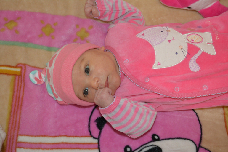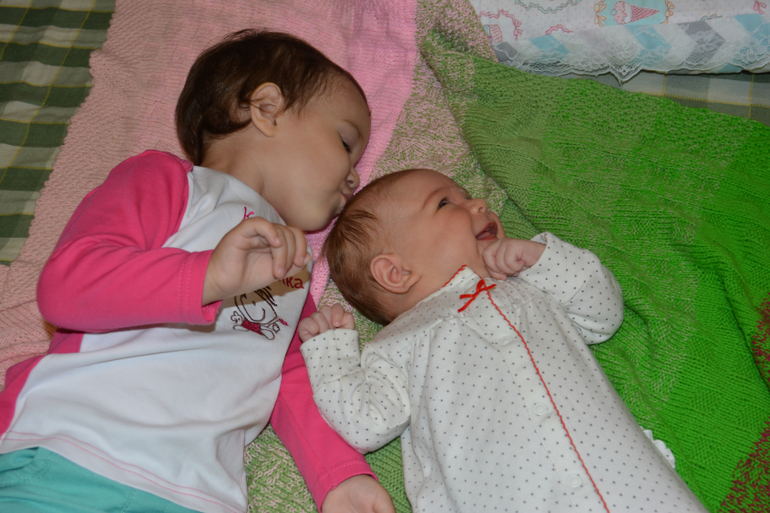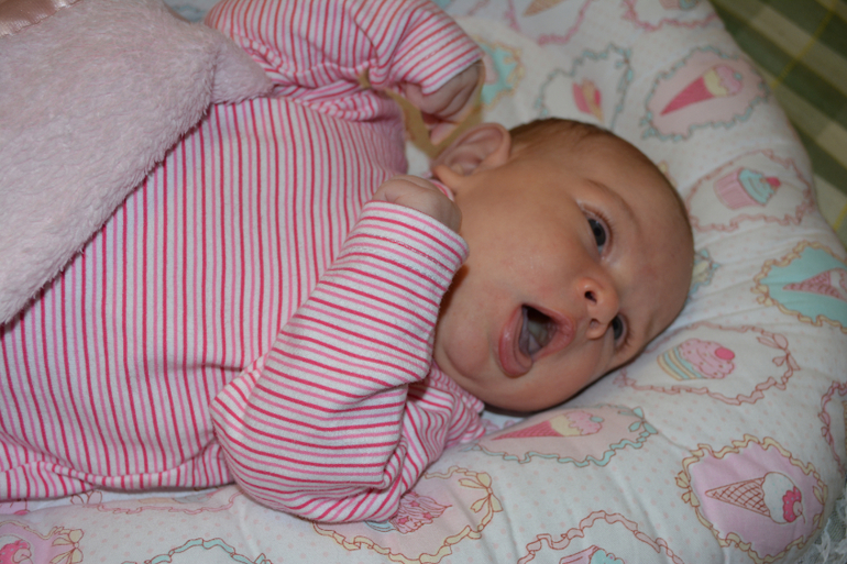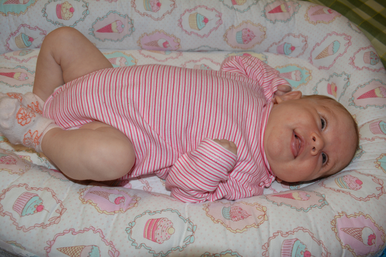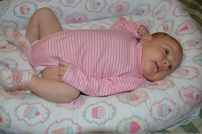 Моя малышка очень подросла и изменилась за второй месяц жизни! Такой прям человечек, вся расправилась))) Щечки хомячиные наела))) Но складочек как и у Крис особых нет!!! Но Софа явно больше Кристинки в этом возрасте! Улыбается вовсю, болтает тааааак
