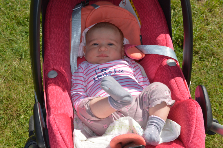 На улице спит хорошо, прям по три часа может, может и дольше - заходим домой уже и просыпается)