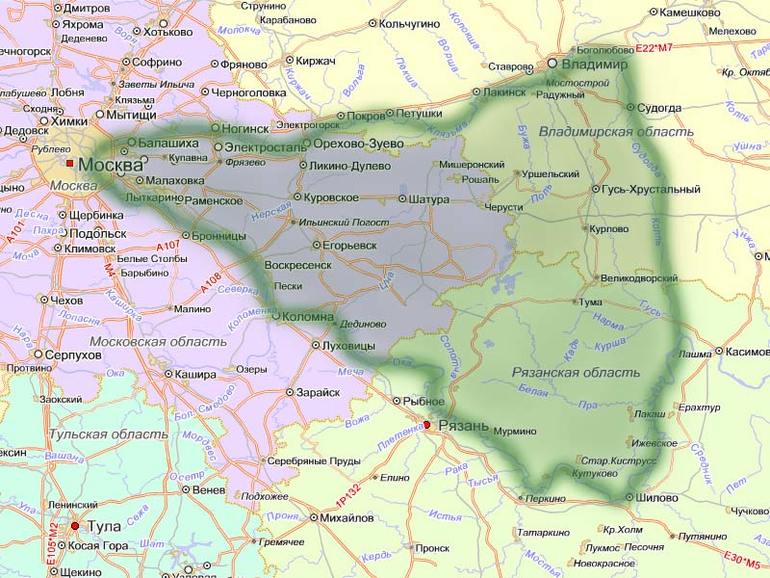 Если соединить на карте Москву, Владимир, Рязань линиями по Клязьме, Москва-реке и Оке, речкам Колпь и Судогда, которые берут начало в Гусь-Хрустальном районе и текут в Оку и в Клязьму, то получившийся треугольник, площадью около 25 тысяч кв. км., с острием у Москвы это и есть знаменитая Мещера.