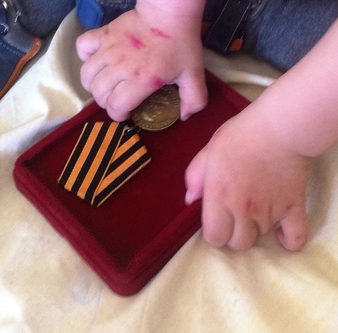 Мы с Андреем с утра в честь дня победы рассматриваем ордена и медали моих дедушки и прадедушки... Пока мы слишком малы, чтобы идти в Бессмертный полк... но обязательно пойдем, когда подрастем!