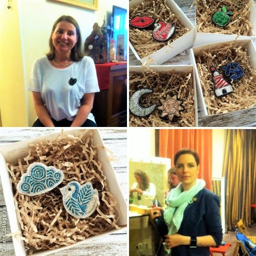 В начале лета случайно прочла о ней здесь на ББ, мне понравились ее работы и самое приятное, что она готова сделать украшения для конкретного человека, прочувствовать его индивидуальность. В общем за лето ее оригинальные брошки-значки поселились жить у многих моих подруг)