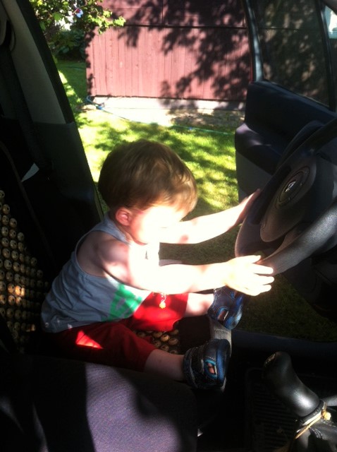 Я думаю ну вот как такой малыш уже интересуется машинами, техникой - хлебом не корми, только пусти его в "шишину" порулить))