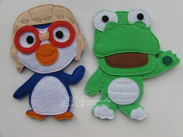 Решила порадовать дочь, сшить ее любимых героев из мультфильма "Пингвиненок Пороро". Вот что у меня получилось: пингвиненок Пороро и динозаврик Кронг. Сшито вручную)
