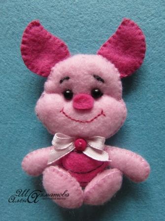 Вот такой замечательный Пятачок поселился на одежде моей дочери! Шила эту брошку для жилетки. Пятачок так полюбился Машеньке, что без него на прогулку не идем, обязательно надо к чему-нибудь прицепить) Идея не моя, не помню у кого брала выкройку.