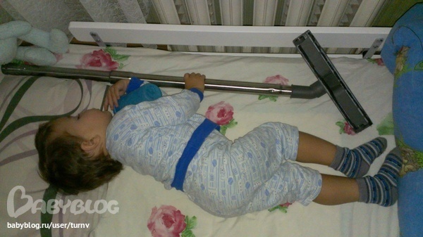 обожает мыть полы и пылесосить.. вечером ложился спать, а часть пылесоса отдавать отказался)