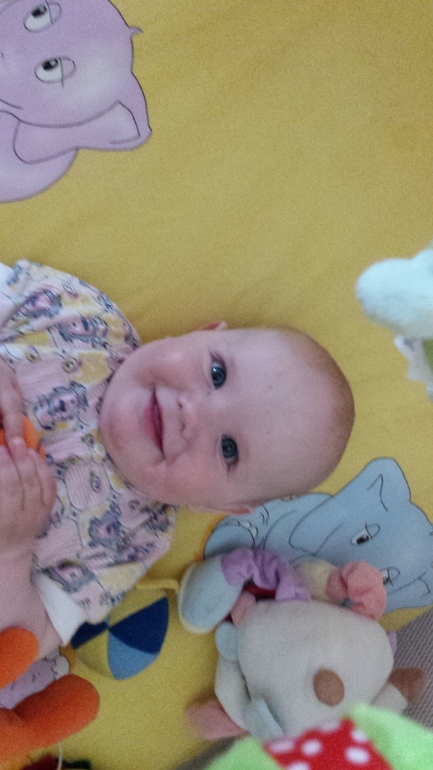Еще любит лежать на боку.. сам так поворачивается и играет в такой позе. не любит коляски.. прогулочную вообще ненавидит.. а в люльке соглашается лежать только если ему пора спать, поэтому наше спасение эргорюкзак...сейчас , правда, на улице жара, не знаю, как будем дальше справляться, в рюкзаке жарковато...а весит он 9 кг и 73 см. голова и грудь 44... Вот вроде все написала)))