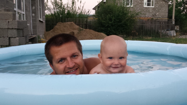 Очень быстро ползает, встает в кроватке, сегодня сам сполз с кровати попкой впепед. Совсем не плакал, когда сдавали кровь. Ярослав все так же невозмутим и дарит всем самые солнечные улыбки. Когда кушает, всегда кормит меня с ложки, угощает папу яблоками и персиками. Недели 2 назад у нас получился гастрономический прорыв!!! Вот он не ел почти ничего, только творожки и то чуть чуть...а на след. День он ест ВСЕ!!!! на завтрак каша, потом фруктовое пюре или фруктик, потом в обед суп или мясо из банки, потом опять фруктики и вечером 2 банки творога. Ночью грудь, днем все реже нужно ма ино молочко. Любит яблоки, персики, арбуз, плов, суп с фрикадельками и творожки.