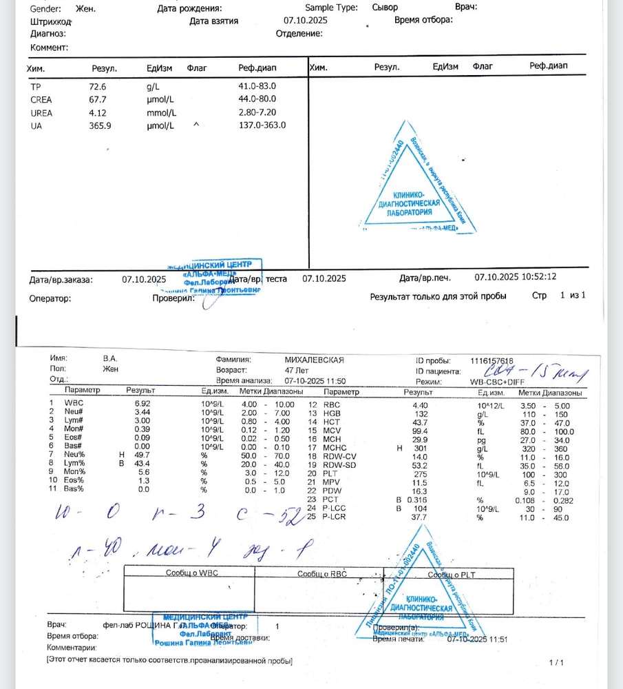 У меня болит бочина слева. Болит где то внутри, не понятно где именно боль локализуется. Нажмёшь - можно нагнуться, выпрямиться, короче полноценно шевелиться в разные стороны. А так - на обезболах и в корсете живу, но корсет особо не помогает. Сделала снимок поясницы - позвоночник как меч самурая - ровный, красивый и здоровый, т.е.к нему у терапевта претензий не возникло. Нашли камушек 5 мм в почке, но случайно и справа, там вообще ничего не беспокоит, лечение прошла, УЗИ повторно не делала. Долбит слева, в районе крестца. Опять появляется кровь в моче, буквально следы (домашний тест на ОАМ). Прошла позавчера что то типа скрининга на здоровье почек, но без УЗИ - проблема с врачами. Вроде на вид все в норме. Но я и не разбираюсь особо. Может кто "увидеть" - есть проблема с почками у меня или нет? Больше проблем нет - ни давления, ни тромбофилий, ни варикозов, гормоны идеальные, ожирения нет, короче обычный человек в остальном, кроме спины слева.