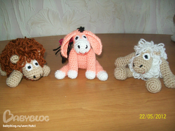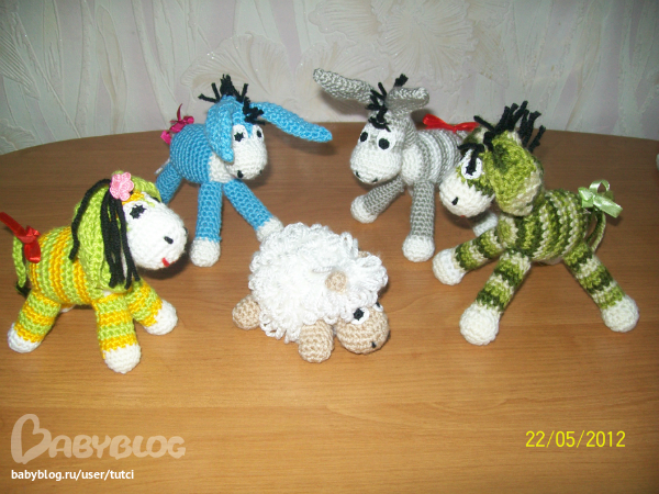 Может не в то сообщество со своими игрухами.но мне здесь больше нравится,скоро начну удовольствие от вязания игрушек испытывать.вот моя ослинно-овцовая ферма заказов получилась