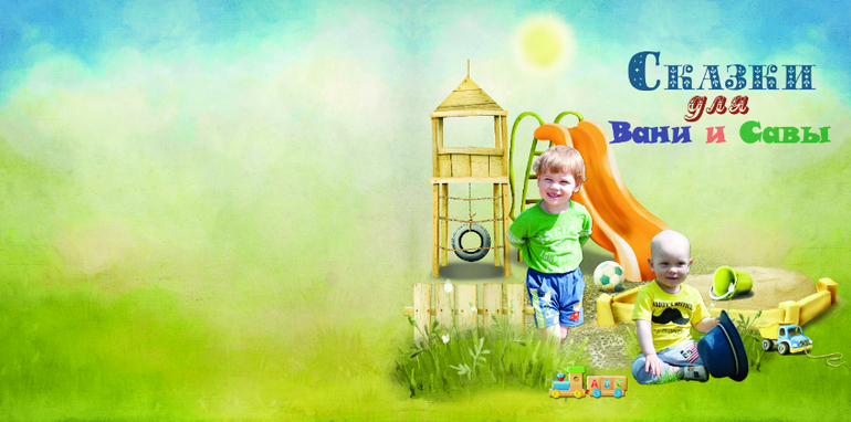 Начинаю делать фотосказку про своих сынушек. Сделала первый разворот.