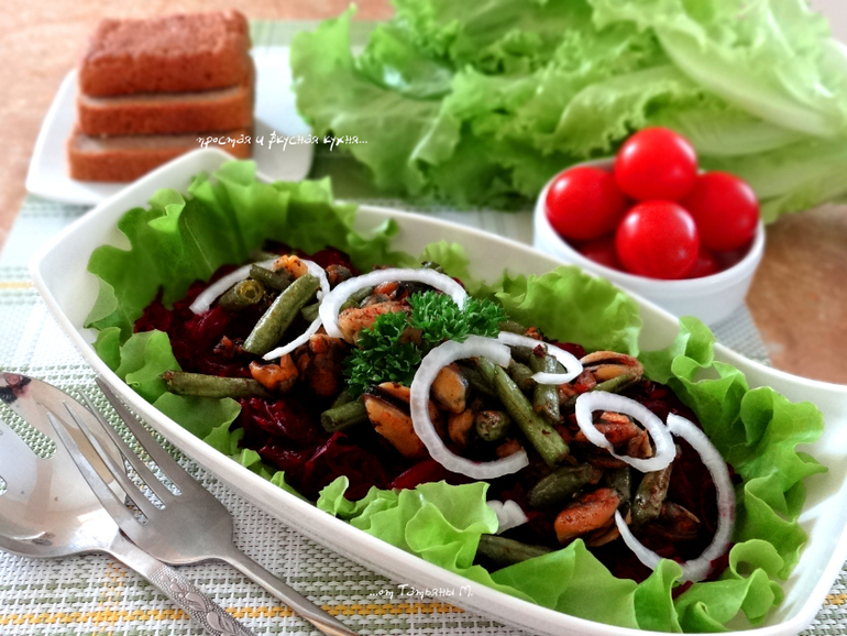 Рецепты - салаты/закускиОчень простой в приготовлении, но необыкновенно вкусный салатик с необычным сочетанием свеклы и мидий! Рекомендую!
