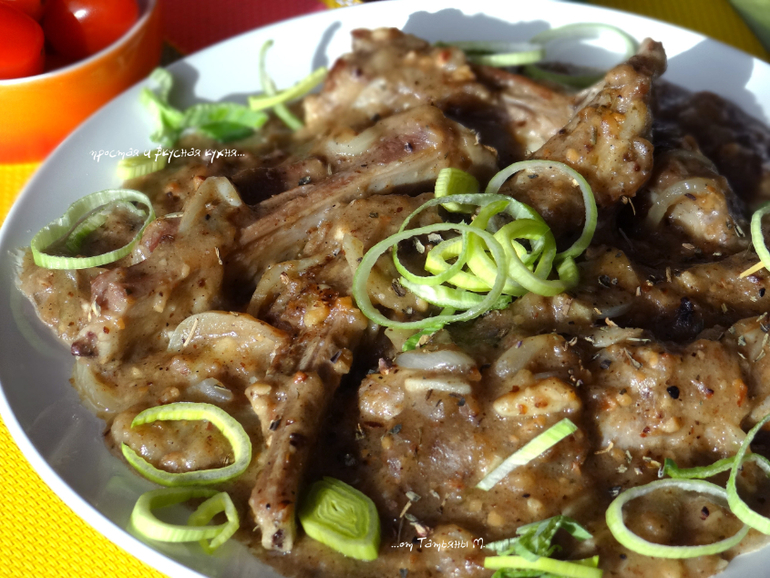 Бараньи ребра в миндально-ржаном соусе с чесноком, майораном и розмарином