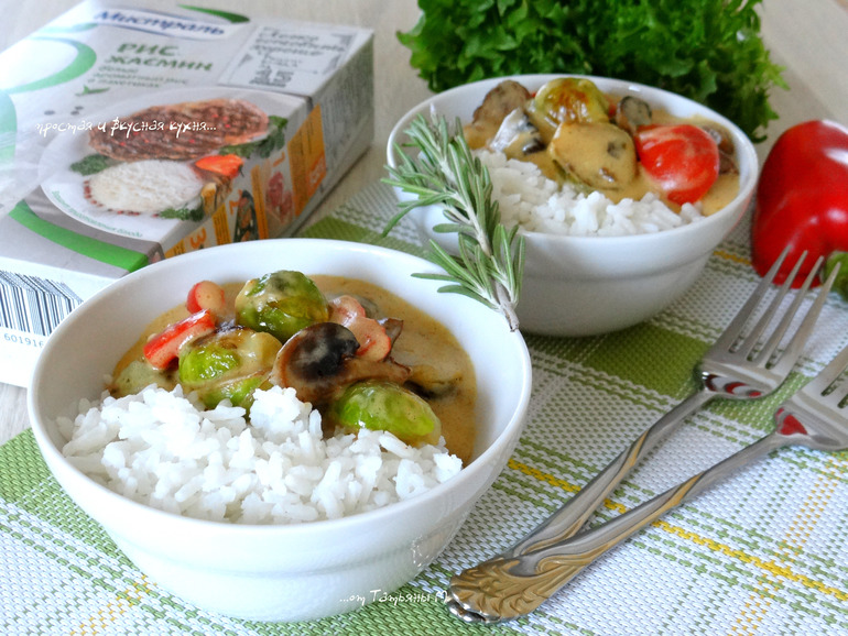 Густая грибная подлива с брюссельской капустой, болгарским перцем и розмарином! Вкусно, ароматно!