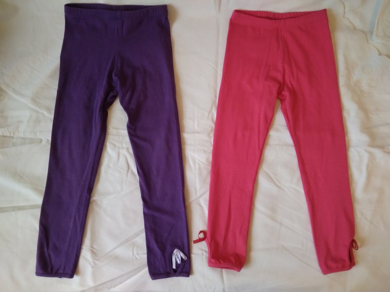 Фиолетовые на рост 116, длина 58-59 см, пояс 22,5 см; малиновые 110, длина 54-55 см, пояс 20 см.