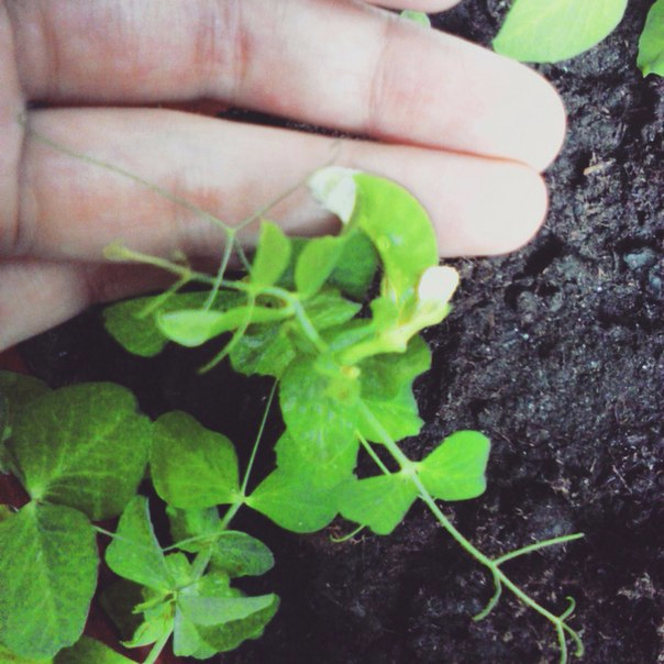 Человек сам семечки сажал(горох,огурцы,помидорки и салат)))) сам ежедневно поливает и опрыскивает)) вот уже маленький стручок появился))