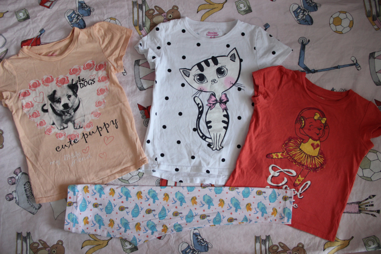 футболочки 104-116, Новые, по 350 руб, шорты размер 110-116, 400 руб, одеты один раз