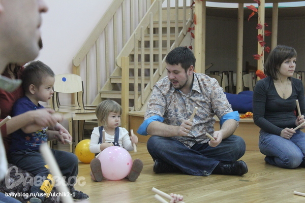 Мы были в субботу и в воскресенье. Просторный зал. Отличный пол. Красивая музыка. Совершенно ненавязчивое обучение ритму и восприятию музыки. Через игру. Через мячики, клавесы (палочки деревянные), ладошки, ножки, стишки, ленточки и даже кисточки! Мы играли, сидели на полу, водили хороводы, читали считалочки, танцевали. Все без обязаловки. Дети находятся в свободном пространстве. Родители делают, дети либо присоединяются, либо исследуют все вокруг, в основном детки присоединяются. Это же интересно, то, чем занят родитель. И вообще, душевно очень.