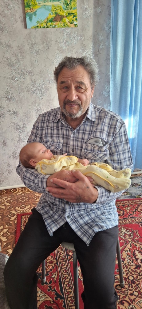 Ну и на память фото с прадедом (мой дедушка) (обожаю когда он нянчит моих детей, это так трогательно и так ценно, что они знают тепло его рук. Лежат в его руках как в колыбели. Ощущение, что он ежедневно нянчит младенцев, так ловко у него это получается, даже ловчее, чем у меня ☺️) P.S. расстегнутый карман на рубахе не заметили, не на него смотрели 😂