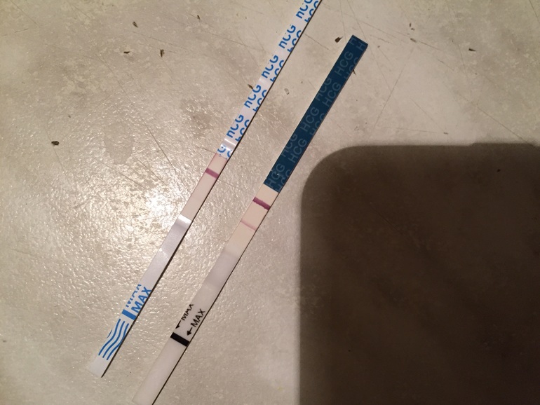 Вообще нет. Если уж 2 полоски показывает то это то Б, просто не понятно при ИК до вырабатывается ХГЧ или позже, если это у Вас оно то странно что тесты показали