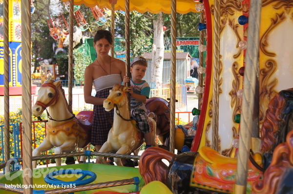 С погодкой нам не очень повезло из 11 дней, только 5 было тепло и солнечно, остальные дни шел дождь или было холодно, но дома мы не сидели, постоянно ходили в парк, были в дельфинарии, пингвинарии, океанариуме, мини-зоопарке, ходили на причал. Про пляж и море я вообще молчу, Никитку уводили оттуда каждый раз с боем и ревом, так ему нравилось ковыряться в песочке, бултыхаться в воде. Как просыпался, брал свой круг,подходил ко входной двери и требовал, чтоб пошли гулять, дома в Королеве он не проситься на прогулки.))) Про парк- отдельное слово, там миллион атракционов, но нас привлекали только карусели с лошадками. Даже был такой смешной случай. Подходим к любимейшей карусели с лошадками, я говорю сыну: "Вон смотри, твои лошадки, счас кататься будем." Никита ускоряется, а все это слышал билетер с другого атракциона, он и говорит: "Лучше давай на паровозике покатайся." Никита ему: "Пока, пока!" и бегом к лошадкам. Тот билетер: "Все, все, понял, к лошадкам, так к лошадкам." Я смеялась.))) Во всяких зоопарках-океанариумах малыш животных не боялся, рассматривал с интересом, озвучивал их.