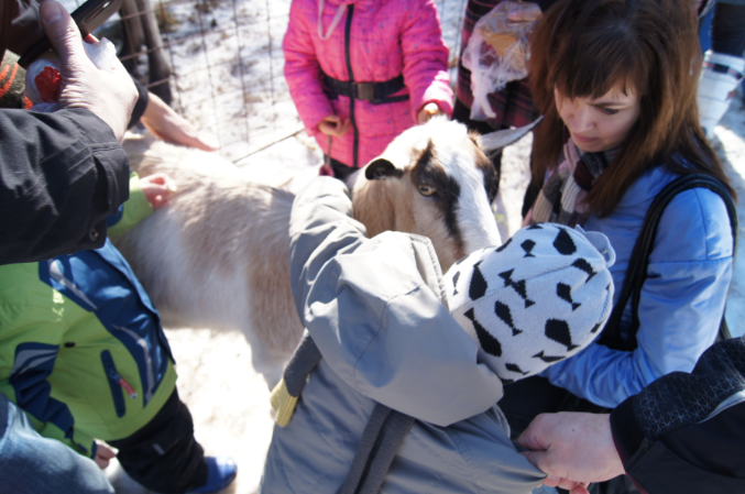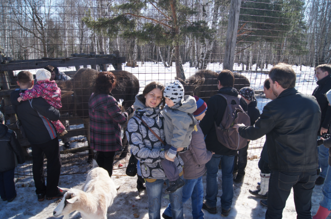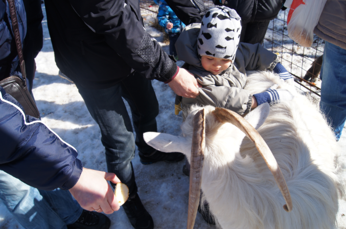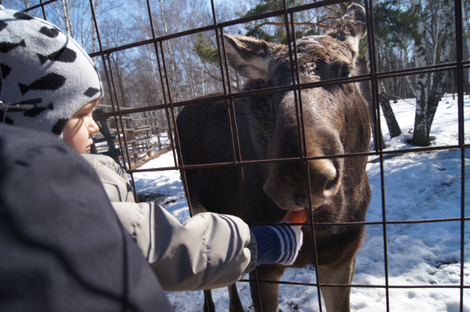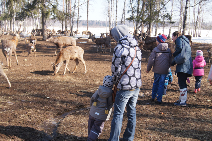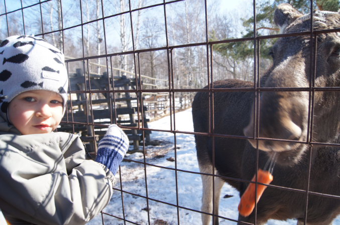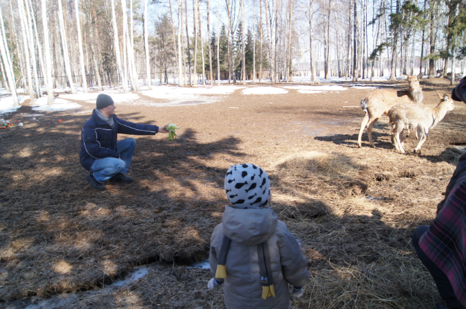 А так послушали экскурсию, посмотрели на оленей, лосей, покормили их, натрогались вдоволь очень наглых коз, которые как только увидели толпу туристов, так рванули к нам за угощением и потом ни на шаг не отставали, лезли всюду.))) Никите все быстро надоело, как только еда для зверья у него кончалась, терял к ним всякий интерес и начинал придумывать себе пакостные занятия, так что мы толком не посмотрели на косуль и кроликов, а поехали домой, где он отрубился почти на три часа.)))