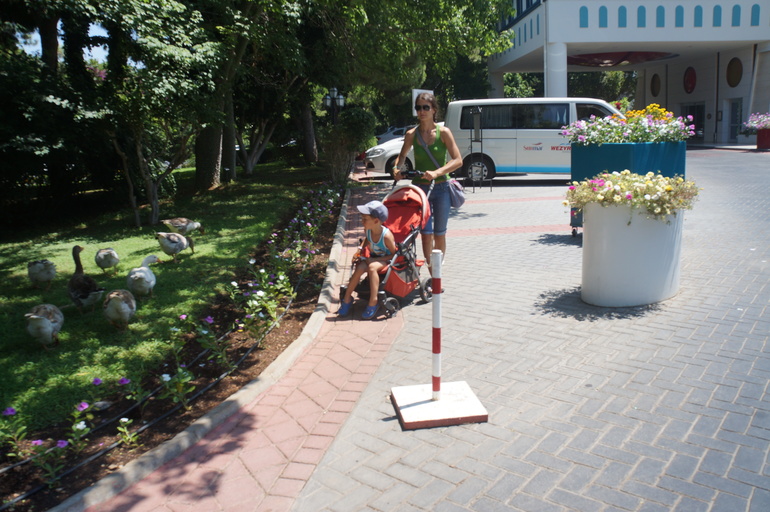 А еще в этот отпуск Никита почувствовал себя опять малышом, для прогулки и покупок по Белеку мы арендовали коляску в отеле. Коляска ему была ужасно мала, но папина шея осталась в России, а дедушка уже староват для длительного ношения внучка.