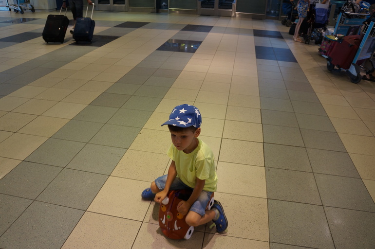 Но оказалось, что очень удобный, крепкий и вместительный чемоданчик-то.)) Обратную дорогу я вообще все время прокатала сына на этом чемодане, т.к. после темп-ры он был обессиленным, сама присаживалась на него, в общем рекомендую.![]()