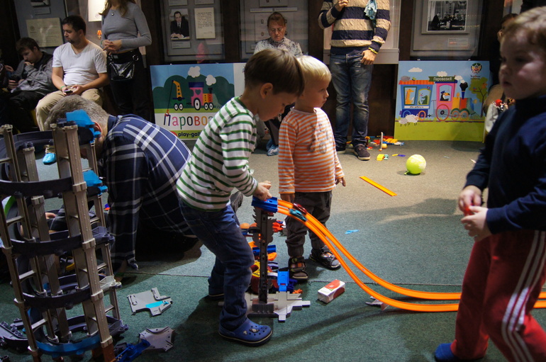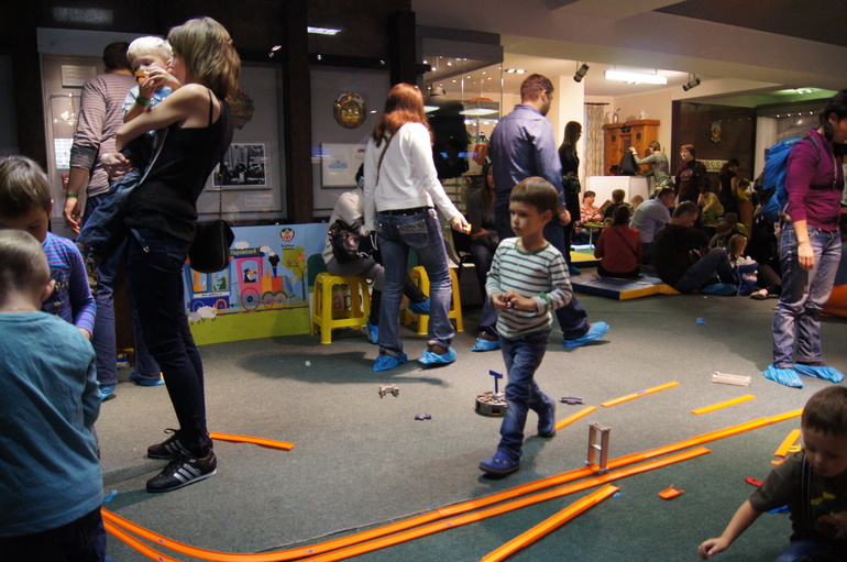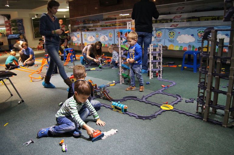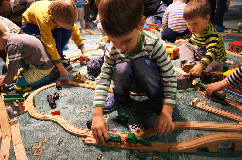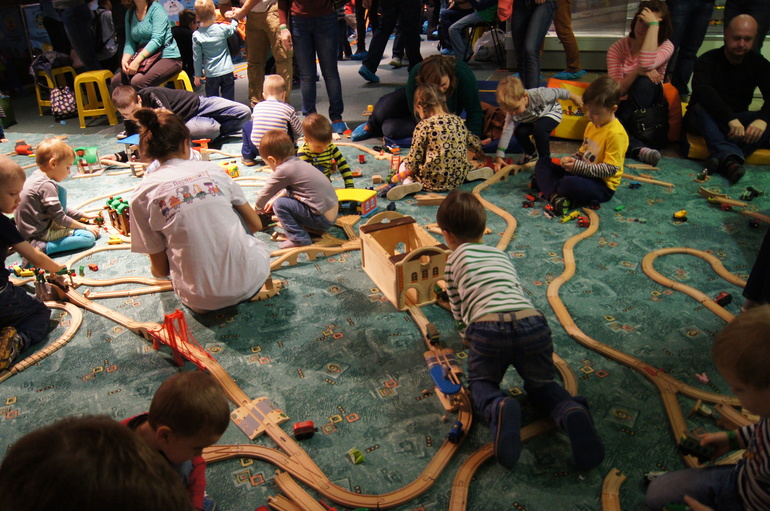 прогулкиБыли в эти выходные в "паровозии", даааа выходные, это не будни, деток ну очень много, но игрушек и места для игр всем хватало. Хотя драки и плач тоже были, Никита вот пару раз всплакнул, один раз с мальчиком сцепился, тот набрал себе штук 30 паровозов и вагонов, заныкался в уголок и играл там спокойненько))) Никита набрел на этого мальчика, поразился такому неравноправию и вцепился в пару вагончиков, мальчик покрупнее, махнул рукой и отлетел мой дитенок в сторону, ну и пошла драка.(( Мальчишек друг от друга оттаскивали с ором. А второй раз деть мой поплакал из-за очередной несправедливости, когда положил свой паровоз в сторонку, на что-то отвлекся на секундочку, а паровоз-то кто-то утащил, бедаааа...))) Короче, потом я зорко следила за игрушками сына, потому что отвлечешься на что-то и все...сын отправляет меня в пешее приключение на поиски такой же машинки/паровоза которого не стало.)))