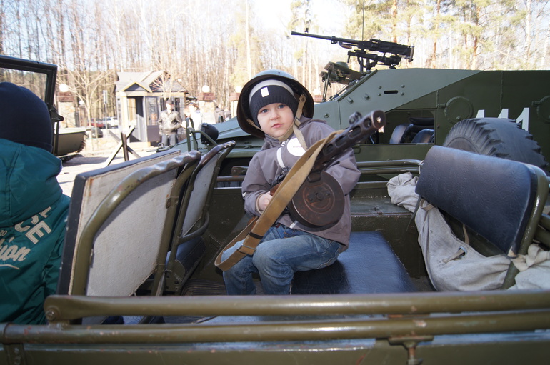 С самого утречка поехали в музей В. Задорожного, брали билеты только на внешнюю экспозицию, т.к. времени было катастрофически мало, нужно было ехать в гости, внутреннюю только повспоминали с прошлой поездки.)) Полтора часа пролетели как миг, все-таки музей военной техники - это рай для мальчишки, поиграли "в немцев и наших", посмотрели на сверхлегкий летательный аппарат, как его готовят к полету, как взлетает и садится, ребенок был в восторге. А еще ему разрешили посидеть в военной машине, одеть каску и взять неприподъемное ружье.