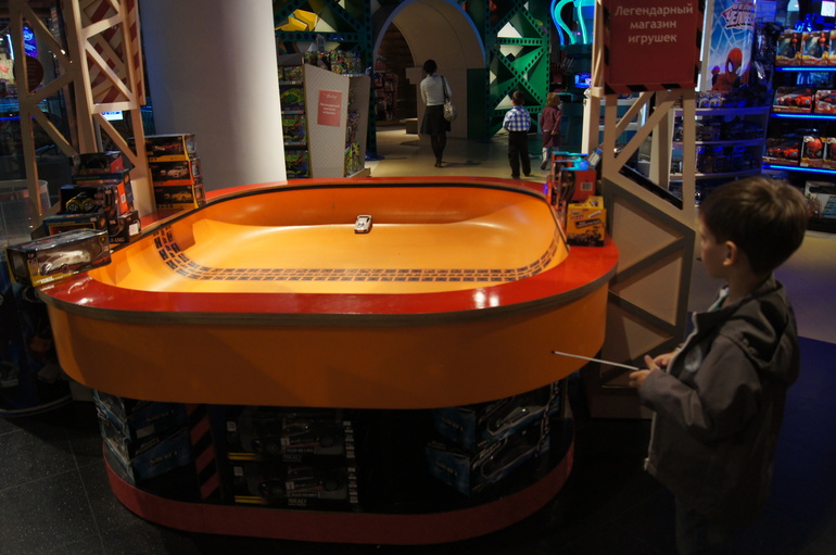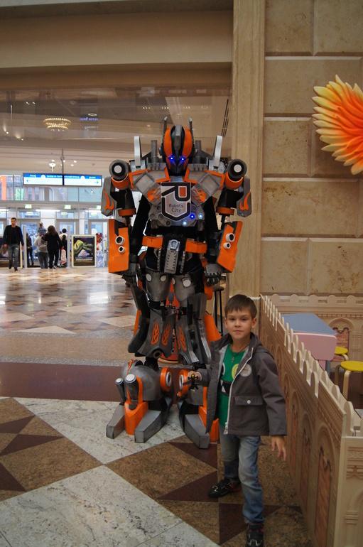 Но и без есть, что посмотреть, потрогать, вот много видела "хающих" отзывов о ЦДМ, не знаю почему, я с сыном в восторге, продавцы все с улыбкой встречают, много магазинов, где можно просто поиграть, не покупая. Цены нормальные, ну может быть чуточку подороже, чем в той же сети Детский Мир. Выбор огромный, присмотрели подарок на будущее пятилетие. Кафетерии тоже с обычными ценами. Куча бесплатных каких-то аттракционов, типа гонок на электромобиле, какие-то интерактивные игры, ростовые куклы, раскраски, аниматоры, всякие люди, переодетые в костюмы мультяшных героев. Был и робот-трансформер, Никита к нему раз ...дцать подбегал, хотя еще с первого раза понял, что это костюм, у чувака кроссовки виднелись.)))
