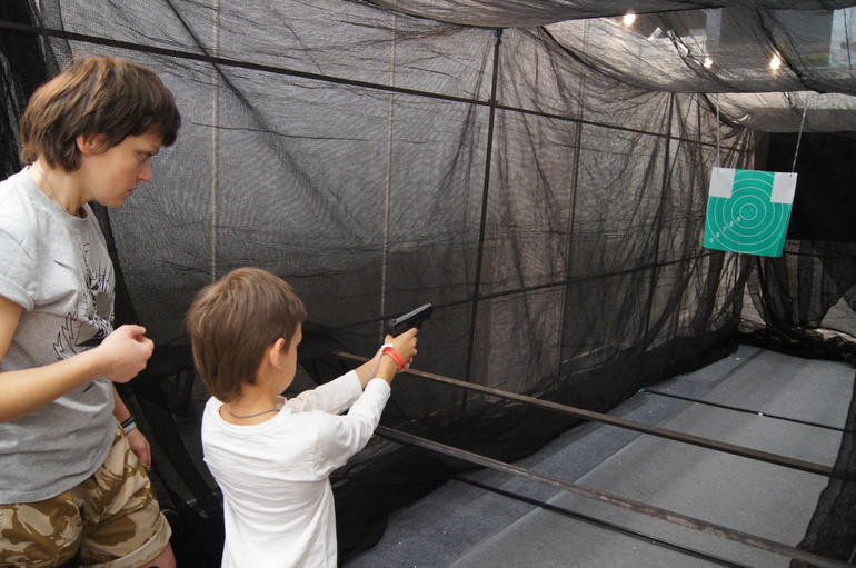Еще ребенок пострелял из пневматики, понравилось, но расстраивался когда лажал.))