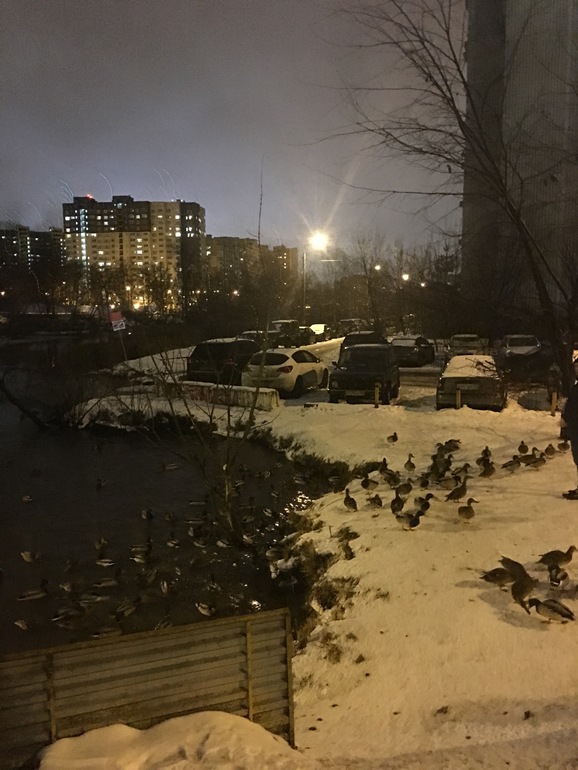 Я прям отсчитываю дни до каникул.)) На работе конец года и запарка, приходишь домой, а тут вторая смена в виде уроков...Я наверно больше Никиты хочу каникулы. Задавать стали больше, письмо у нас идет со скрипом, когда мы его делаем, я сто раз спокойно говорю Никите, чтоб не отвлекался, но внутри бушует пламя и хочется орать.)) Математика, чтение и даже окружающий мир идут вообще незаметно, раз и сделал. Так я ж наверно мазохист, теперь помимо домашки по-русскому, мы делаем домашку и по-английскому...тоже долго. Это я наконец-то наняла репетитора, хотя репетитор говорит, что мальчик смышленный, есть какая-то база, это он в прошлом году ходил на кружок английского в саду, занимается увлеченно, быстро запоминает. Помимо английского у нас же еще футбол и сегодня был отбор в школу олимп.резерва, хз, пройдем или нет, наш дедушка не дослышал время, вместо 4 пришли в 5.)) ааааа)) Сын что-то досдал, что-то нет, в 60-метровке на улице на стадионе прибежал первым. Короче, мне уже все равно, все что ни делается, то к лучшему, как говорится. Попадем так попадем, нет так нет. Вместо наших фото, вставлю фото сумасшедших Мытищинских уток, которым пофиг на морозы, они не улетают в Африку, а зимуют в России, патриоты!