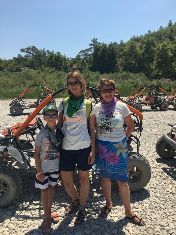 отдыхСледующая экскурсия, которую мы взяли, называлась "3 в 1", брали уже с расчетом развлечения ребенка. Анонсировались багги-рыбалка/батуты на горной реке, ну и рафтинг. Я думала будет все трэшовее, а оказался такой лайт вариант. Сопровождающий у нашей группы, мягко скажем, странный тип. Представился "Ветром", соотвественно наша группа называлась "Группой Ветра". Ну ладно Ветер и Ветер, но у чувака на пол щеки была тату и не изображение ветра, а молнии!! Где логика?? Короче, сначала покатались на багах, трасса не сложная, единственное руль для меня тяжеловат, прям на поворотах трудно было выкручивать, еще несколько луж было, прибавишь газку, брызги летят во все стороны, у дитеныша глаза аж горели.)) После багов поудили немного и пошли на батуты, вода холодная, скользкая от воды поверхность батутов и всяких препятствий, детей страховали взрослые, бегая за ними)) так как те периодически падали в воду, а забраться не могли. Я наверно пару кг там оставила, носясь за сыном, ему ржачно, убегает еще больше от меня, падает в воду, я его вытаскиваю, опять убегает и тд.)) Ну и наконец-то нас отвезли на рафтинг, как нам сказали, пороги были 3 категории. В лодке у нас было чуть больше десятка людей, включая детей. Детей посадили в середину, трех мужиков спереди, один турок был рулевым, тусил в конце лодки. Передо мной мужик был ленивым, еле греб, отвлекался и постоянно фотографировал, делал видео и селфи, от меня ему раз 5 прилетело веслом в качестве напоминания, что чувак, вся нагрузка идет на меня, а я ж типа девочка. Плыли 13 км, часа 2,5 с одной остановкой. За это время успел завязаться роман между турком-рулевым и 16-летней девочкой. Они общались на смеси английского и русского, паренек пару раз ее в воду опрокинул, она сама хи-хи-ха, ее бабушка тоже подхихикивала и умилялась, хотя я б на ее месте, внучку и паренька этого турецкого веслом бы огрела, может в голове, что на место встало. Под конец ваще смешно было, чувак спрашивает на английском где ты остановилась? А девчонка как заорет: "Кто знает хорошо английский, что он говорит?" Я перевела, ну и дальше немного побыла в роли свахи. Хз, чем закончилась эта романтическая история, надеюсь ничем.)) Вернусь к рафтингу, несколько пикантных моментов было, один раз лодка перед нами полностью перевернулась, но по большей части плыли особо не напрягаясь, я даже давала ребенку погрести, сажала рядом с собой. После тайского сплава, когда через одного на берег раненные вышли - это прям увеселительная прогулка получилась. И я сейчас подумываю, может в Карелию на короткий сплав на пару дней съездить, друзья ездили так, понравилось.