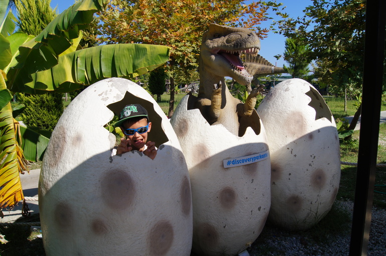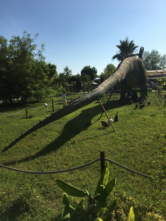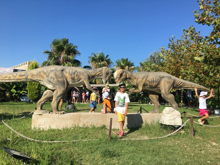 Спустя 4 года побывали снова в Дискавери парке, парк сильно видоизменился. Вот ссылка на прошлый пост, это из серии было-стало тык. Везде проложены дорожки с тентами, защищающими от солнца, деревья подросли, динозавры потасканные стали, то куска хвоста не хватает, то лап, но это уже вопрос к культуре посетителей парка. Сын познакомился с мальчиком, вместе за цесарками бегали, так этот мальчик хотел куском коры от пальмы бросить в скелет динозавра, а мама ему на это, типа лапуль, нельзя бросаться в скелет, а то заплатим большой штраф!!! Не потому что кидаться ветками, палками во что-то - это вообще не адекватно и нельзя, т.к. вещь может испортиться, сломаться, а потому что деньги придется платить! Там был маленький аквапарк и террариум, это вообще позорные места сейчас. Стекла аквариумов не протирают, умерших рыб, лягушек не убирают, ну может это сделано специально, типа показать бренность бытия и что все умирают, ну или чтоб дети помимо внешнего вида живых существ, ознакомились и с их «внутренним миром» разной степени разложения. В итоге за 4 года программа касательно динозавров вообще не изменилась, даже 3д фильм про этих монстров остался прежним. Из новенького появилось 2 шоу, одно с морскими котиками, другое с крокодилами. Морские котики понравились, программка развлекательная короткая, но животные - умнички. По прошествии всей этой экскурсии, спросила сына, что больше всего запомнилось, Никита ответил, что как он носился за цесарками, экскурсовод пообещал детям, что если кто-то поймает птицу, то может забрать с собой. А птички тоже не дуры, детям было запрещено залезать за веревочное ограждение, которое устроено вокруг каждого динозавра, т.к. провода там понатыканы, мало ли что… Так вот, птички, спасаясь от детей, забегают за ограждение и мирно пасутся, понимают что-то однако... Ну и фото, начну вот с этой фотографии медведя-эксбициониста: