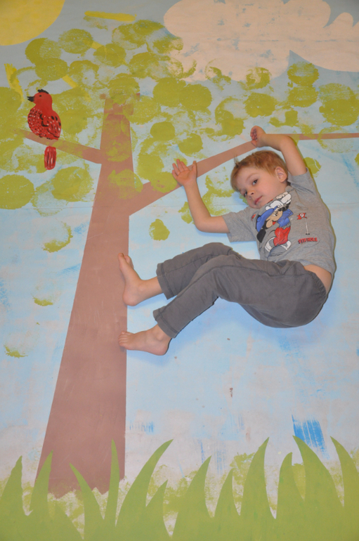 Ну а идея была такова, что на это дерево и Макар и Варя (она тоже активно помогала творить), как бы, залазили и свисали с веток. На фото получается очень реалистично. Даже я пробовала. ))