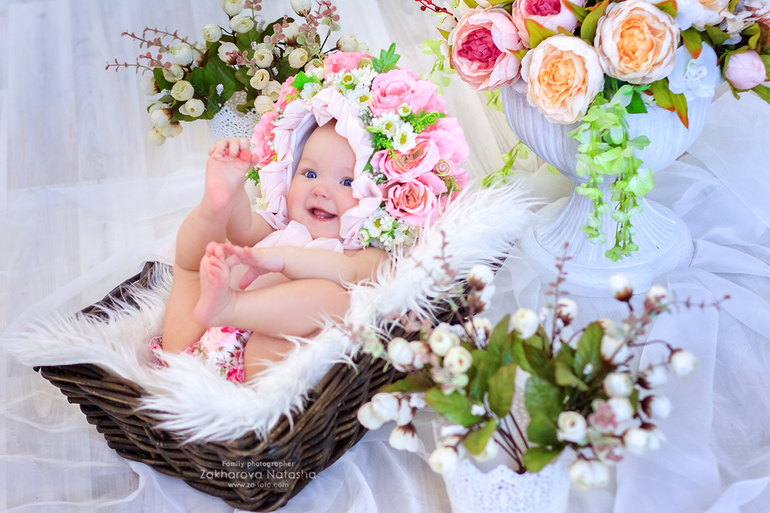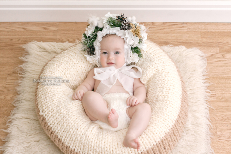 Домашняя фотосессия в Люберцах. Малышке с красивым именем всего 3 месяца. Аксессуары и реквезит я сделала своими руками (боди, гнездышко, плед).