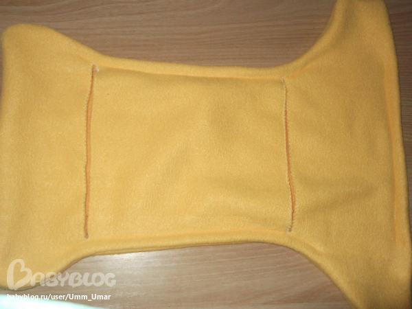 на последнем фото выше уже вывернутый подгузник,и я отошла в местах,где будет резиночка примерно на 1,5-2 см,и просто прошила прямой строчкой,таким образом получилась как бы труба,в которую я затяну резинку,сейчас будет фото чуть ближе