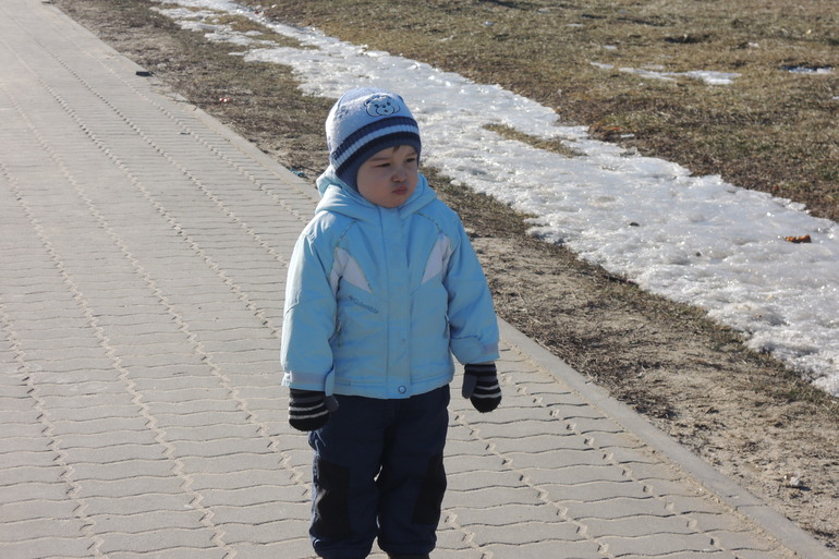 Очень Тика компанейский. В парке постоянно пристает к людям, что-то им пытается рассказывать про голубей, про солнышко. А если кто-то голубей кормит, тут же подбегает и просит ему тоже дать - семечки, булочка, пшено. Снимает варежку и держит ее в одной руке, а другой лезет, например, в пакет с семечками.Как-то покормил голубей, потом подошел к мужчине и начал его просить, чтобы тот ему одела варежку. Говорит, дядя - одень. Тот его не понимает. Опять говорить - одень. Не понимает. Одень варежку - дидень варику. Дядька понял, начал ему надевать, тогда Тихон передумал, говорит - нет, папа, и побежал к Виталику, чтобы ему папа одевал. Вообще это новая фишка у него начинать разговаривать с людьми. Вчера нашел бесхозную машинку бетономешалку, и долго ее катал с таким счастливым и даже победоносным видом, что можно было со смеху умереть. Ходил вокруг фонтана и проходя мимо людей говорил им - я катаю! К каждому подходил и делился.