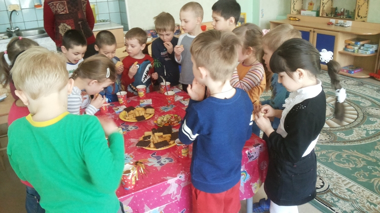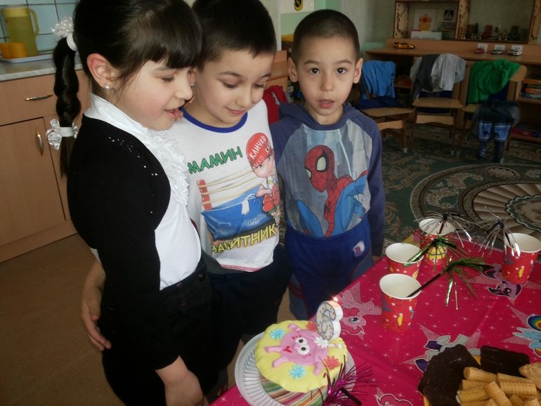 потом поехали в Детский сад там быстро накрыла стол ребятам и начали праздновать с одногруппниками