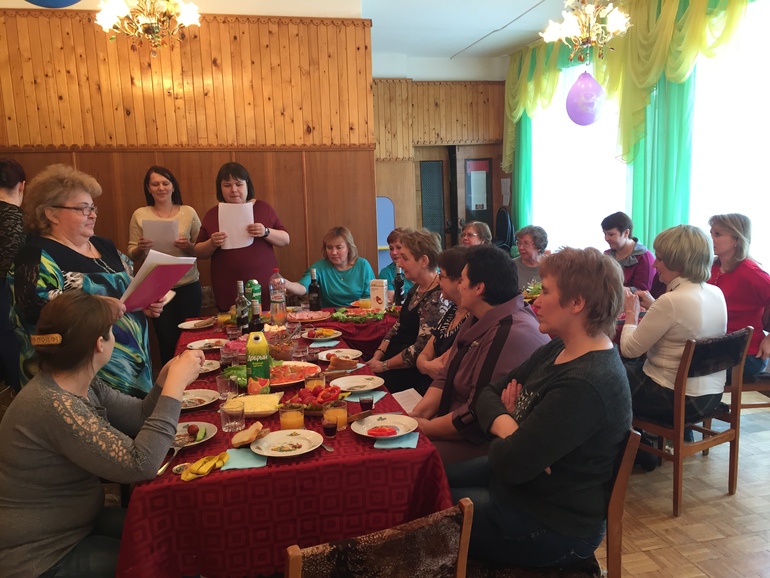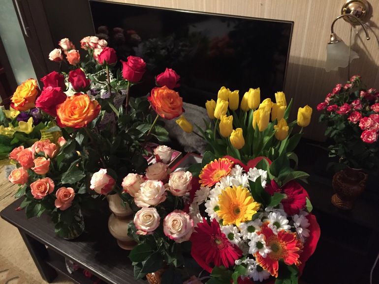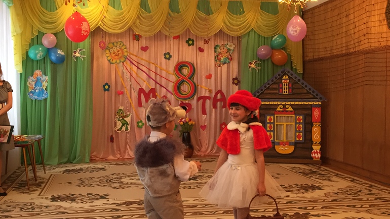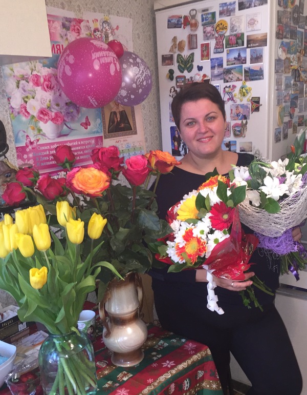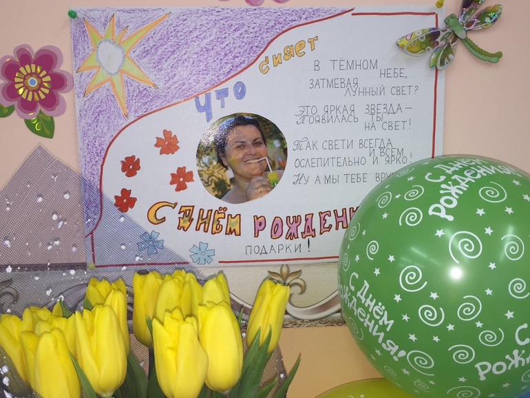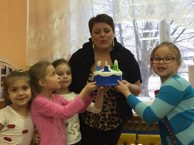 В Детском саду утром меня встретили дети с цветами и с пластиковым тортиком))))