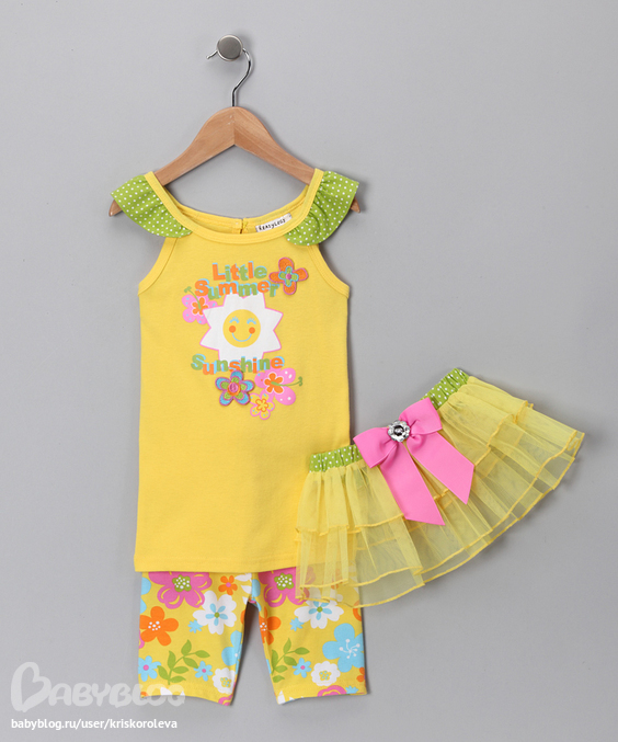 23.Яркий по настоящему летний комплект "Солнышко" из трех предметов, топ+юбочка+леггинсы