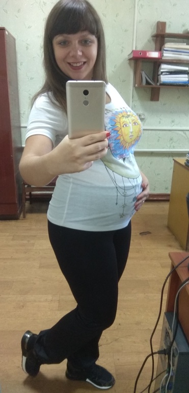Сын уже говорит, что у мамы "огроменный пузик", да и мама уже сама ощущает))) Защимляет в тазу справа нерв, тянет через всю ногу, иногда больно даже наклониться. У меня так в первую беременность было, только с левой ногой, после родов прошло.