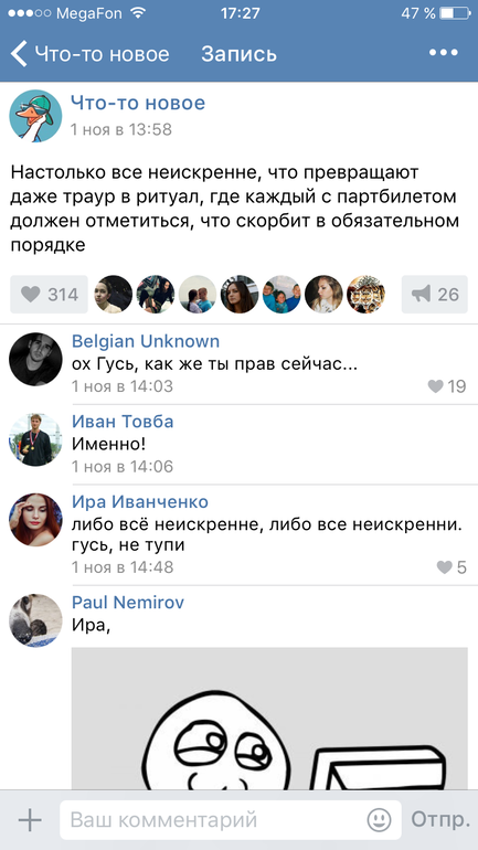 Я вчера это видела в комментах в группе футбольных хулиганов вконтакте. Минут 20 провисело в комментах к одному из постов приглашение на митинг