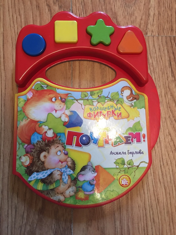 Книга шла в подарок. Фигурки пищат, когда на них нажимаешь, но нажимать надо от души. Текст просто ужасный, но картонные страницы, фигуры, пусть будет.